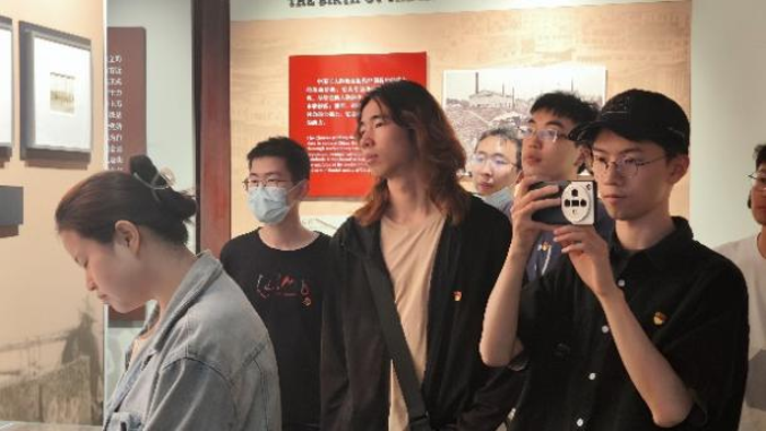 在参观过程中,大家详细了解了当年中国劳动组合书记部诞生的历史背景、组织机构、运作方式及光辉业绩。展厅里展出的各类工人运动宣传品、报刊、工人代表的书信和回忆录,生动地再现了那个风起云涌的年代。安旭同学介绍说,劳动组合书记部不仅在组织工人罢工、争取工人权益方面发挥了巨大作用,还为中国共产党的工人运动培养了大批骨干力量。而李启汉和邓中夏等工运先驱的事迹,在令人为之感动的同时,更是让大家深刻认识到工人运动在中国革命历史上的重要地位和作用,认识到工人运动和党始终紧密联系在一起。