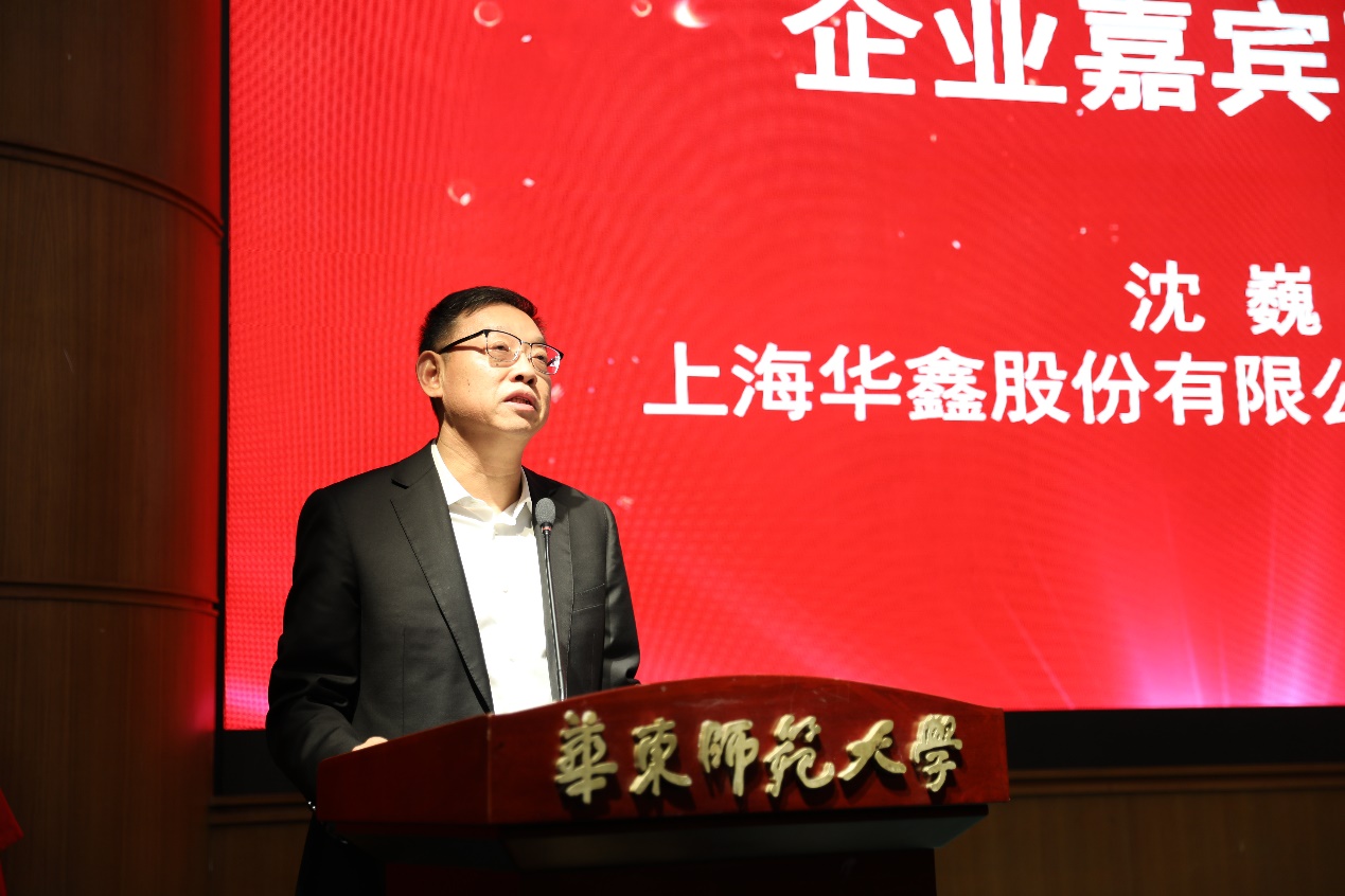 华东师范大学副校长程静首先致辞。她感谢华鑫股份长期以来对学校事业的支持,肯定了校企合作的重要成果,指出华鑫奖学(教)金的设立促进了学校师生的发展。她在讲话中强调了设立华鑫-华东师大联合实验室的意义,展望了未来双方合作的新机遇。