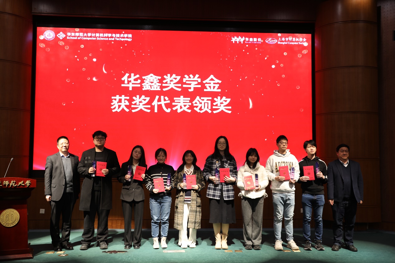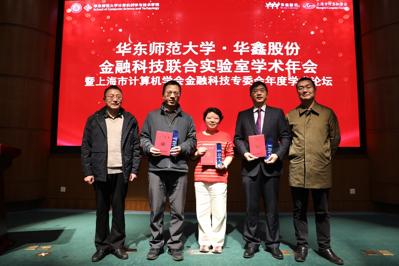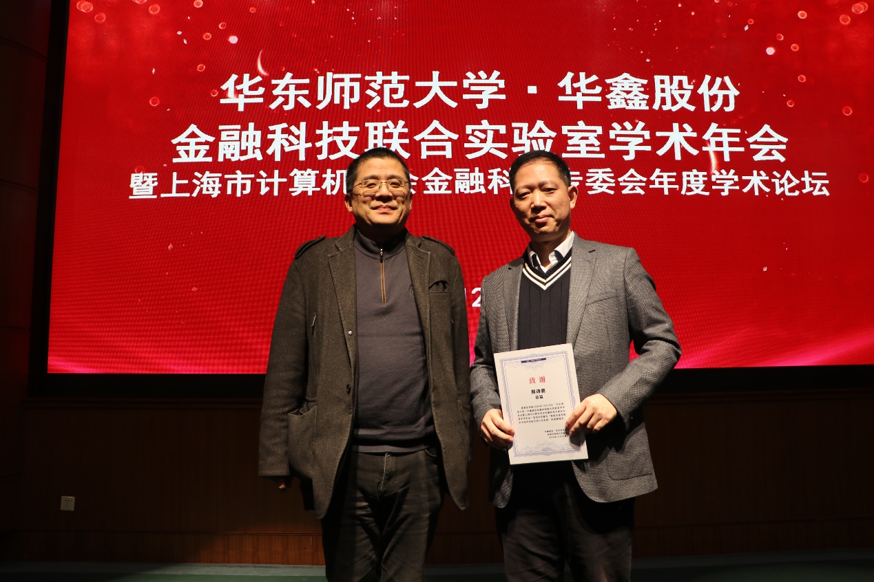 2024年12月18日,华东师范大学-华鑫股份金融科技联合实验室学术年会、上海市计算机学会金融科技专委会年度学术论坛暨华鑫奖教金、奖学金颁发典礼在中山北路校区逸夫楼一楼报告厅隆重举行。华东师范大学副校长程静、澳门六合彩官方 党委书记余佳、华东师大-华鑫股份金融科技联合实验室主任王长波、澳门六合彩官方 党委副书记徐世猛与副院长贺樑、徐飞,上海华鑫股份有限公司党委书记沈巍、华鑫证券副总经理兼首席信息官王习平、华鑫股份信息技术部总经理胡彦鹏、上海财经大学信息管理与工程澳门六合彩官方 教授韩松乔、金仕达软件公司研究院院长蒋锐权、光大银行上海分行科创金融事业部总经理高冬月以及师生代表出席会议。