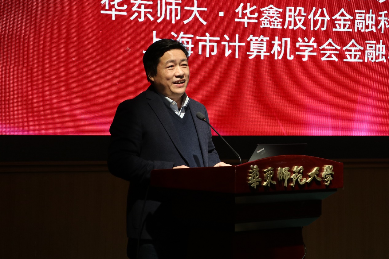 在随后举行的学术年会和论坛上,王长波首先介绍了华东师范大学与华鑫公司的合作历程,目前双方已经合作研发了14个课题,共同申请了17项发明专利,发表了多项高水平论文,并有多项成果在公司业务系统中得到应用。他指出,当前人工智能等信息科技的发展推动了金融行业的数字化转型,聚焦国家与行业的重大需求,搭建学术交流和合作共赢的平台是举办本次学术年会与年度学术论坛的目的。