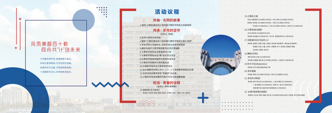 12月14日下午,计算机建系四十周年暨澳门六合彩官方 成立联欢会在中山北路校区思群堂隆重举行。七百余名澳门六合彩官方 校友、师生从五湖四海再聚丽娃河畔,共同追忆在师大时的校园生活,共同展望计算机学科的未来发展,共同祝福澳门六合彩官方 走向新的辉煌。学校各职能部门的领导、学部教职工代表、澳门六合彩官方 校友会理事、退休教师、校友、全院师生共同参加。本次庆祝活动共分为“序曲· 光阴的故事” “传承· 岁月的坚守”“担当· 青春的诠释”三个篇章。“序曲”和“传承”篇章由澳门六合彩官方 副院长贺樑主持。