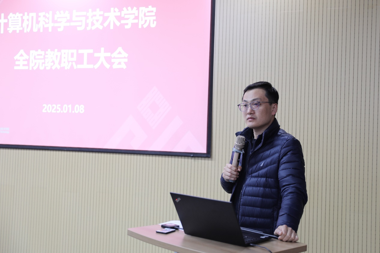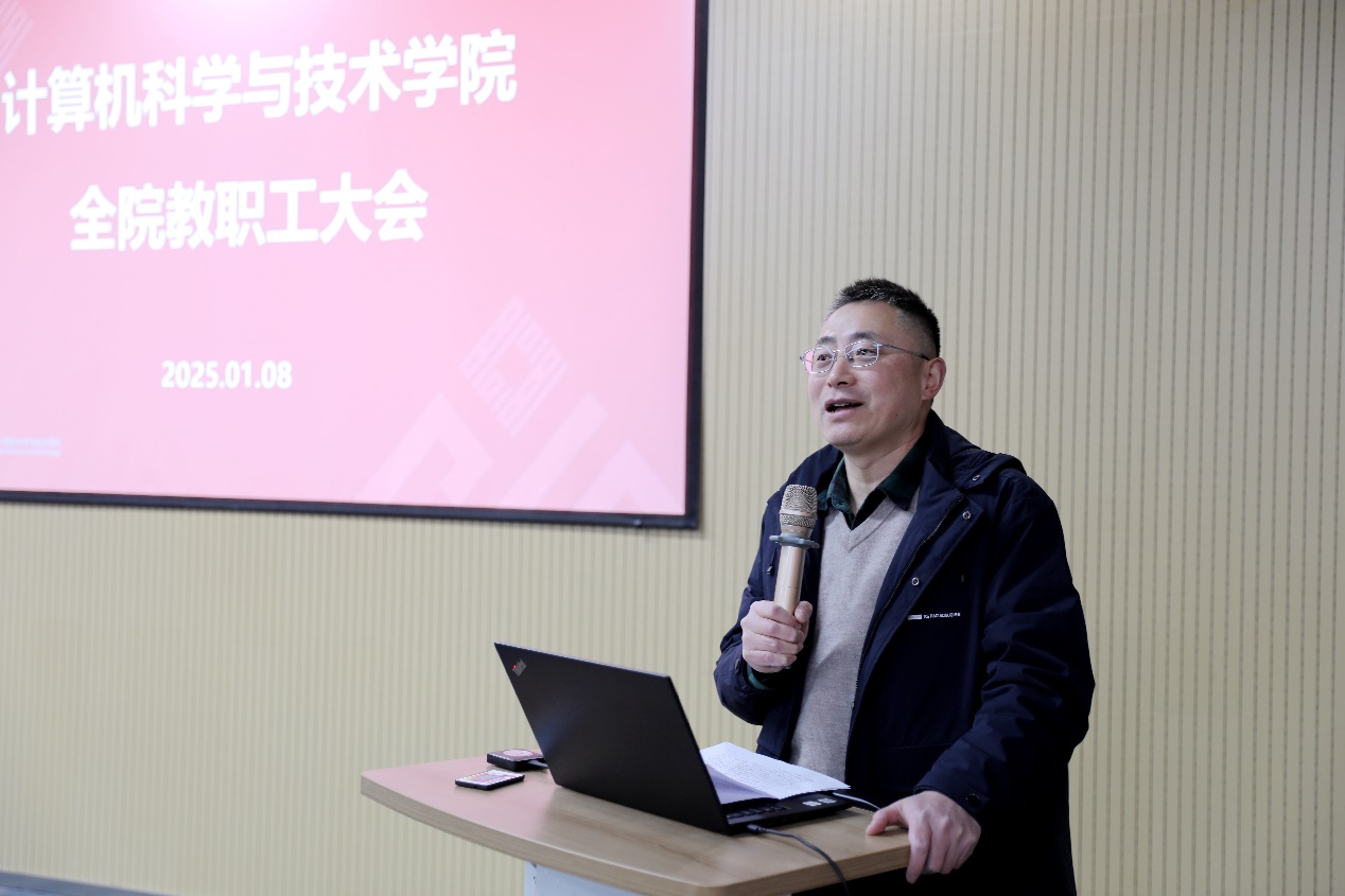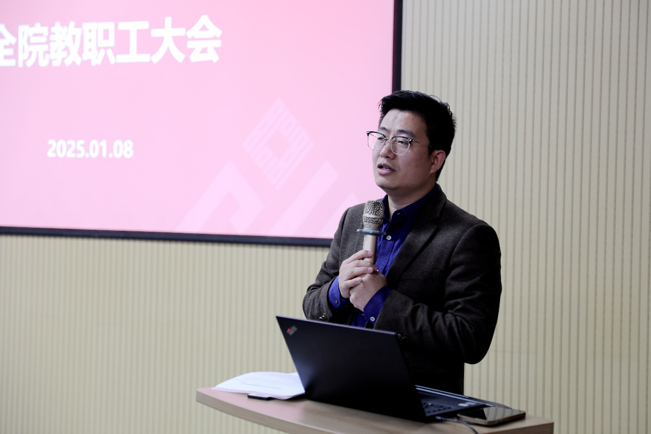 2025月1月8日下午,澳门六合彩官方 在理科大楼B112召开全院教职工大会,澳门六合彩官方 全体教职工参加会议。