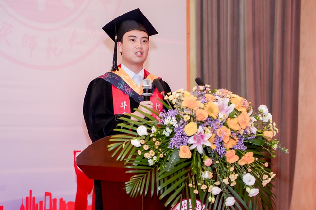 本科优秀毕业生代表孙翊铭、硕士优秀毕业生代表马圣进依次发言。孙翊铭同学表示在华东师大学会了思考与创新,更明确了人生方向,鼓励大家带着母校的教诲和期望,踏上新征程,未来不断追求卓越,为社会发展贡献力量。马圣进同学向一直关心爱护2024届毕业生的老师、家长表示由衷的感谢,表示过去的三年,是他成长最快的三年,鼓励大家继续传承师大精神,努力追求卓越!