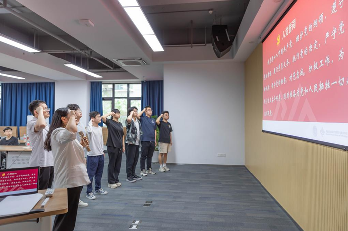 紧接着,入党已满三十年的兰曼老师带领今年新入党的教师和学生党员进行了庄严的宣誓仪式。新入党的预备党员面对党旗,誓言铿锵有力,表达了对党的坚定信仰和忠诚。