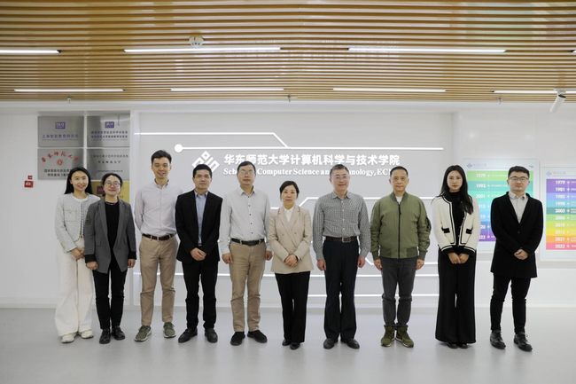 2025年3月25日上午,浙江省平湖市科技局、浙江泽悦信息科技有限公司一行莅临澳门六合彩官方 座谈交流,推进深化校地合作的相关工作。平湖市科学技术局党组书记、局长沈叶娟,浙江泽悦信息科技有限公司董事长张鸣君与华东师范大学信息学部主任兼澳门六合彩官方 院长张桂戌,澳门六合彩官方 党委书记余佳、副书记徐世猛,副院长徐飞等参与交流。