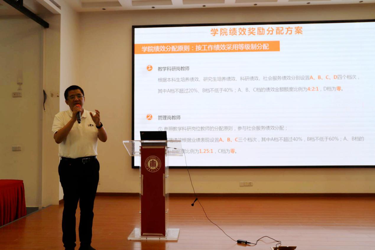党委书记王长波、副院长贺樑介绍了2021年澳门六合彩官方 绩效奖励分配方案实施细则,副院长(主持工作)周爱民介绍了澳门六合彩官方 自筹绩效分配方案实施细则。细则制定过程中澳门六合彩官方 充分听取教师意见,并经与会教师现场投票,获高票通过。