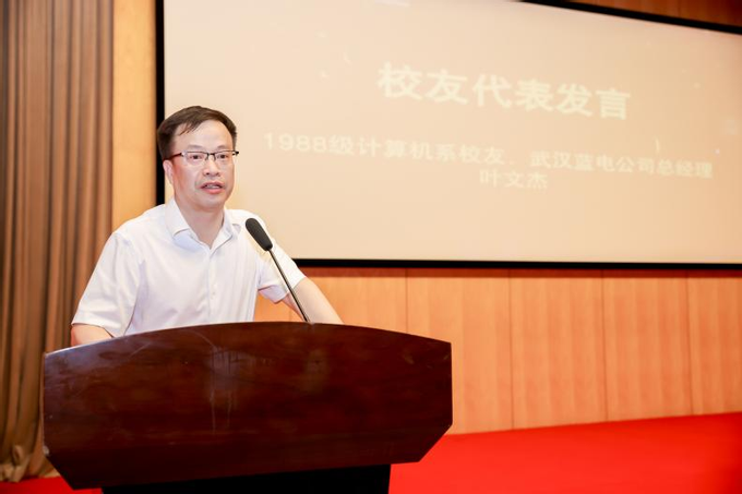 校友代表叶文杰先生在发言中回顾了自己的大学时光和创业历程,他鼓励毕业生要尽早明确自己未来的发展方向,包括专业方向和人生方向。这个发展方向首先应该是自己喜欢的,只有喜欢的事你才能做的好,做的轻松;一旦明确了自己未来的发展方向,后面就是制定自己的人生规划并一步步去努力实现。在这个过程中有一点是很重要的,就是学会严格自律。同时,他祝贺学弟学妹们圆满完成学业,并祝愿大家前程似锦、事业进步。