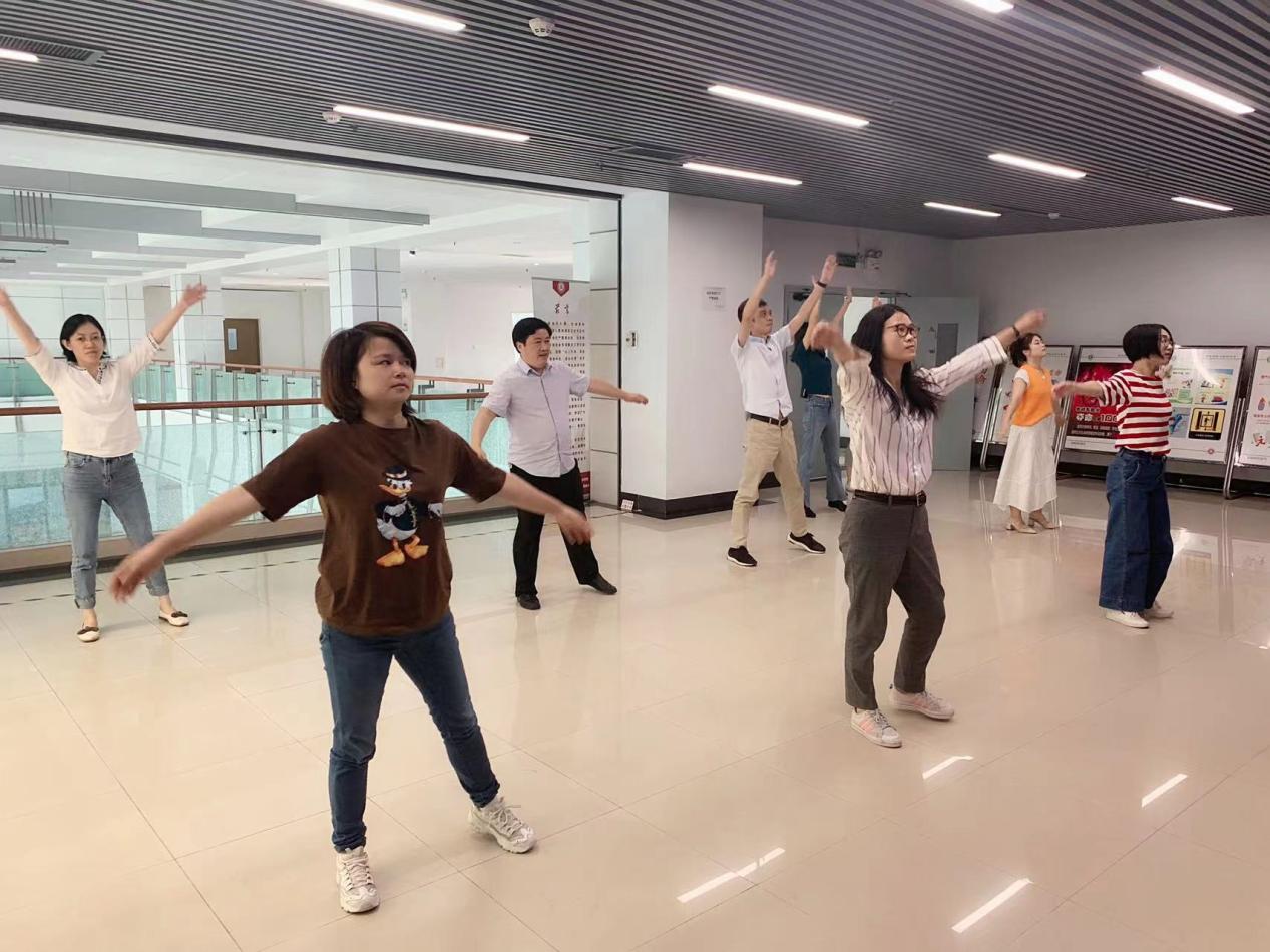 澳门六合彩官方 长期坚持的一项文体活动是广播操活动,每天上午十点准时在理科大楼5楼平台如期开展,风雨无阻,老师们可以通过工间操活动疏解久坐带来的疲乏,增进彼此之间的沟通和交流。