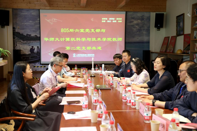 航天八院805所党委副书记兼纪委书记王磊、党群处处长胡芳芳、华东师大澳门六合彩官方 党委书记余佳、院长周爱民、副院长陈蕾、张凯及双方支部党员和入党积极分子代表等30余人参加活动。